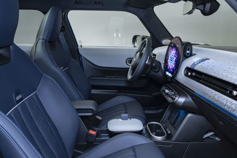 Podobnie jak okrągły instrument w poprzednim modelu, nowa centralna ikona z różnorodnymi funkcjami jest wizualnym punktem centralnym wnętrza. Centralny wyświetlacz OLED w przeprojektowanym kokpicie został przesunięty bliżej kierowcy, co ułatwia jego osiągnięcie. Jego wysoka rozdzielczość wyznacza nowy standard. Dzięki MINI Operating System 9 wszystkie funkcje pojazdu można kontrolować intuicyjnie za pomocą dotyku lub głosu. Smukły wyświetlacz dotykowy ma wysokiej jakości szklaną krawędź, ma średnicę 240 mm, a jego logika obsługi przypomina standardy znane z smartfonów.