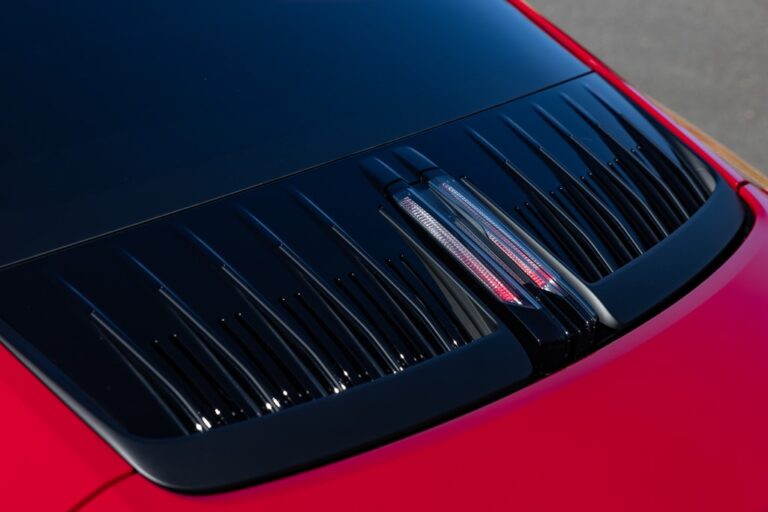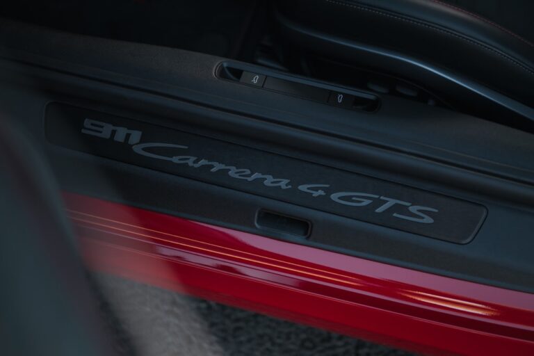 Patrząc na profil, model 2025 Porsche 911 Carrera GTS zachował ogólny kształt, ale miał kilka asów w rękawie. Jeździł na 20-calowych felgach z przodu i 21-calowych z tyłu. W przeciwieństwie do standardowej Carrery, która miała pięciopunktowy wzór, wersja GTS była wyposażona w centralny system blokady. Innym unikalnym detalem były przyciemnione lampy kierunkowskazów zamontowane z przodu nad nadkolami. Z tyłu odświeżona Carrera GTS miała nowe finy nad pokrywą silnika, zawierające charakterystyczne czerwone linie generacji 992 umieszczone pośrodku. Porsche zmieniło także tylny zderzak, który miał podwójne wydechy umieszczone bliżej środka, zamiast z boku, jak w modelu 2019 Porsche Carrera GTS.