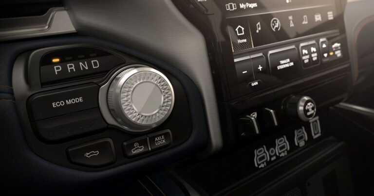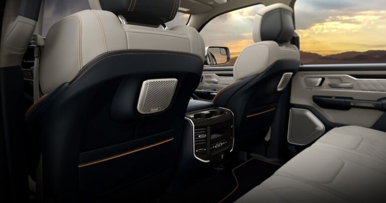 Najnowocześniejszy Ram 1500 oferuje szereg zaawansowanych funkcji w ramach wnętrza, które przewodzi w swoim segmencie, w tym system Uconnect 5 z nowym 14,5-calowym ekranem dotykowym, 12,3-calowym cyfrowym zestawem wskaźników, pierwszym w branży 10,25-calowym ekranem pasażera, cyfrowym lusterkiem wstecznym, wyświetlaczem Head-up (HUD) oraz systemem audio Klipsch Reference Premiere.