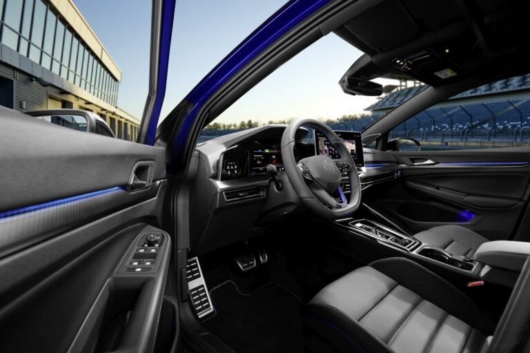 Nowe modele Golf R można łatwo rozpoznać po przeprojektowanym przodzie z nowymi reflektorami LED, podświetlonym znakiem Volkswagena, nowymi kurtynami powietrznymi w zderzaku, nowymi zespołami tylnych świateł LED oraz nowymi opcjonalnymi 19-calowymi felgami z kutego aluminium Warmenau. Wewnątrz znajdziemy nowoczesny system infotainment z wyświetlaczem wizualnie unoszącym się oraz nową strukturą menu. Digital Cockpit Pro w wersjach z pakietem Performance został wzbogacony o nowy G-meter i zegar okrążeń GPS. Mimo zwiększonej mocy, nowy system infotainment, liczne ulepszenia detali oraz system DCC adaptacyjnego zawieszenia, który teraz jest dostępny bez dodatkowych kosztów, nowe modele Golf R będą wprowadzane na rynek w Niemczech w niższych cenach. Ogólnoeuropejska przedsprzedaż rozpocznie się w czerwcu – dokładnie w 50. rocznicę Golfa. Inne rynki globalne będą sukcesywnie dołączane.