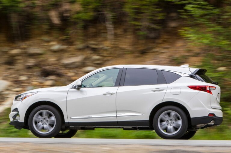 Ostre linie charakterystyczne akcentują przednie i tylne błotniki, a agresywna linia „opadająca” biegnie wzdłuż całego RDX-a. Linie chromowane (w wersji A-Spec w połysku czarnym) podkreślają górną część kabiny i dolne progi. Z tyłu, design RDX z 2019 roku zwieńczono charakterystycznym podpisem świetlnym „smoczego ogona” w lampach tylnych.