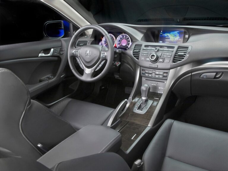Wewnątrz, wszystkie modele TSX z 2011 roku otrzymują szereg wizualnych ulepszeń w postaci zmodyfikowanej stylistyki konsoli centralnej, ciemniejszych elementów wykończenia, jasno wykończonych klamek, zaktualizowanej dźwigni hamulca ręcznego oraz nowych ozdób na kierownicy. Dodatkowo, kontrastowe przeszycia są nowością w skórzanych siedzeniach, podłokietnikach drzwiowych i konsoli centralnej. Pasażerowie z tyłu będą cieszyć się większym komfortem dzięki dodaniu wentylacji grzewczo-chłodzącej zamontowanej w tylnej części konsoli środkowej, a bagażnik konsoli centralnej TSX jest teraz klimatyzowany.