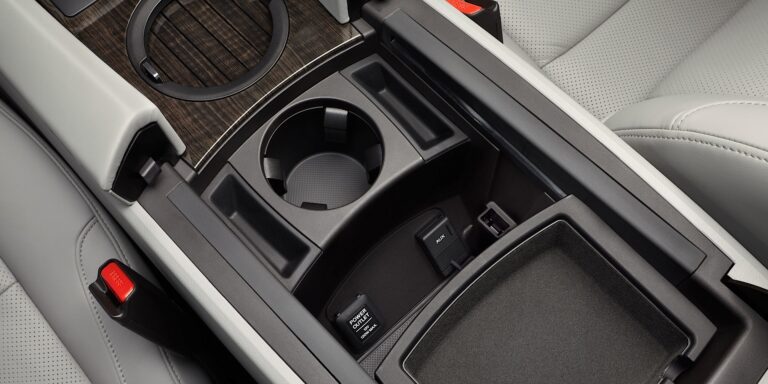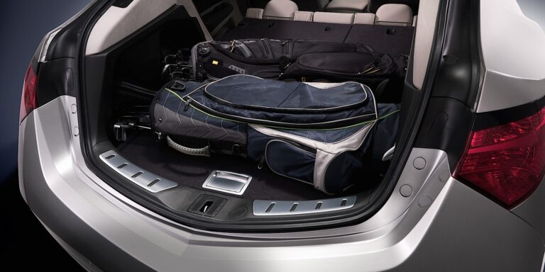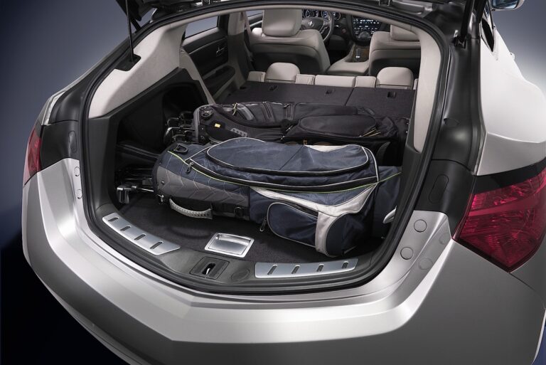 Otwierając elektrycznie sterowaną klapę bagażnika, odkrywamy imponująco szczegółowy tylny bagażnik, który oferuje 26,3 stopy sześcienne przestrzeni za tylnymi siedzeniami. Wyłożony wysokiej jakości dywanikiem, tylny bagażnik ma również sprytnie ukryty zbiornik bagażowy o pojemności 2,2 stopy sześciennej, umieszczony pod podłogą. Ukryte za zdejmowanymi bocznymi panelami znajdują się dodatkowe obszary przechowywania w bocznych ściankach bagażnika. Podobnie jak panel dostępu pod podłogą, zdejmowane boczne panele mają satynowe uchwyty do zwalniania i mogą być przechowywane w zbiorniku bagażowym, aby stworzyć szeroką przestrzeń ładunkową zaprojektowaną na pomieszczenie do czterech toreb golfowych. Gdy siedzenia drugiego rzędu są złożone, Acura ZDX oferuje w pełni wykładany dywanem prawie płaski podłogę oraz całkowicie 55,8 stopy sześcienne przestrzeni bagażowej.