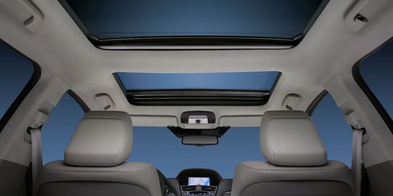 Unikalny design moonroofa współpracuje z otaczającą szklaną strukturą, tworząc najdłuższy szklany dach w rynku motoryzacyjnym – rozciągający się od przedniej krawędzi przedniej szyby do tylnej krawędzi szyby bagażnika. W przedniej części szklanego dachu znajduje się moonroof, który nachyla się i przesuwa w przód i w tył wzdłuż zewnętrznej krawędzi dachu. Ten otwierający się design pomaga zachować maksymalne miejsce na głowę wewnątrz, a jednocześnie utrzymuje dramatyczny i osobisty design „sportowego coupe” kabiny. Stały szklany panel nad tylnym siedzeniem dodatkowo rozjaśnia kabinę. Podwójne motorowe osłony przeciwsłoneczne zakrywają zarówno przednie, jak i tylne szklane panele, gdy pasażerowie Acura ZDX chcą zredukować ilość światła słonecznego wpadającego do wnętrza, podczas gdy demontowalny deflektor powietrza z tkaniny siatkowej osiąga nowy standard dotyczący hałasu wiatru w porównaniu do tradycyjnych deflektorów powietrza.