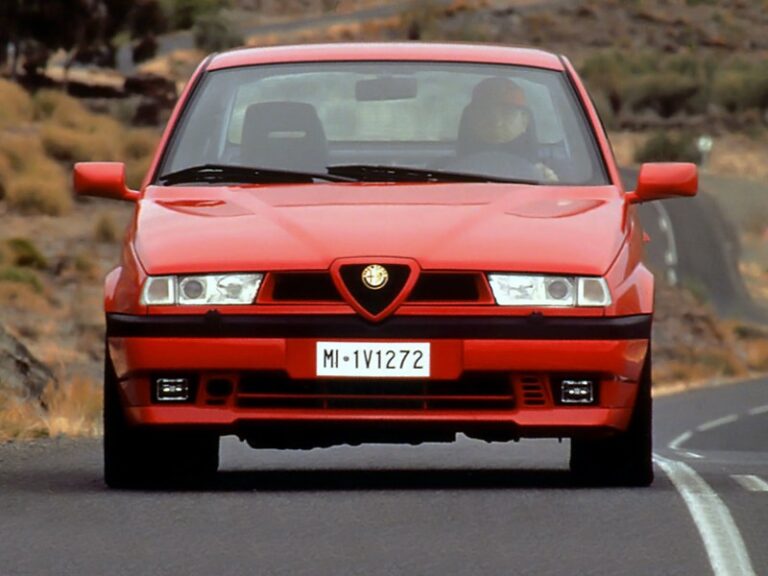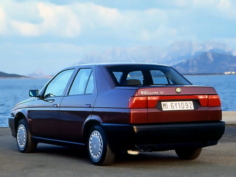 Przestarzała Alfa Romeo 75 z napędem na tylną oś musiała odejść. Po udanej karierze nadszedł czas na nowoczesny pojazd z napędem na przednią oś. Odpowiedzią była Alfa Romeo 155. Dzieliła platformę z Lancią Delta i Fiatem Tempra. Wersja Q4 była wyposażona w napęd na wszystkie koła. Był to praktyczny sedan z czterema drzwiami.