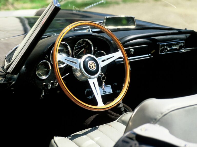 Wnętrze pojazdu podzielono na dwie wyraźne strefy: stronę kierowcy i pasażera. Podczas gdy ta pierwsza skupiała się na kole kierowniczym i czterech chromowanych wskaźnikach na desce rozdzielczej, pasażer miał do dyspozycji radio. Carozzeria Touring udało się stworzyć dach, który można całkowicie złożyć za siedzeniami, pozostawiając czystą linię roadstera, z jedynie podniesioną szybą nad linią dachu.