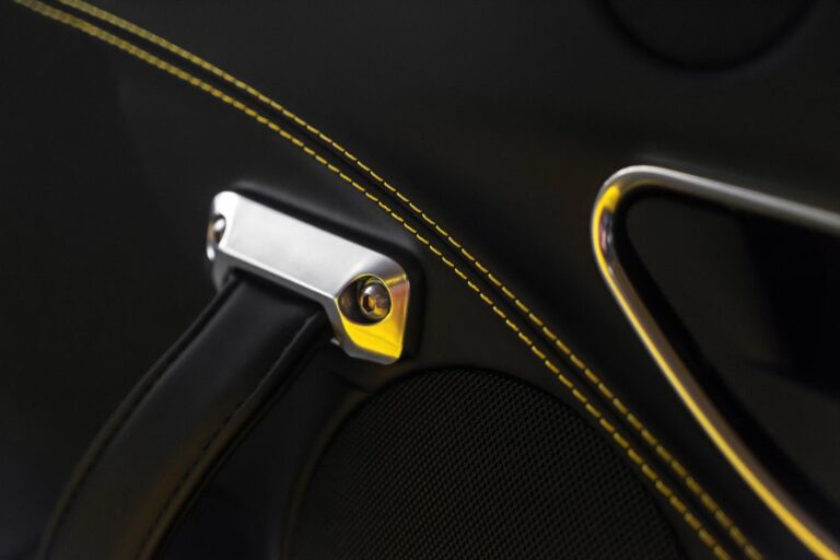 Na koniec, dwa sportowe fotele mają strukturę kompozytową wzmocnioną włóknem węglowym i włóknem szklanym, co zapewnia potrzebną siłę i pozycję siedzącą do jazdy sportowej.