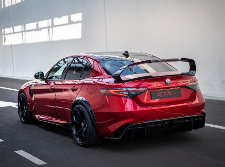 Jednak sama moc nie wystarcza, aby zapewnić niezwykłe osiągi. Prace mające na celu zmniejszenie wagi pojazdu były skrupulatne i przyniosły szczególnie imponujące rezultaty, z całkowitym zmniejszeniem wagi o 220 lb, dzięki zastosowaniu lekkich materiałów, takich jak włókno węglowe do wału napędowego, maski, dachu, przedniego zderzaka, nadkoli i, w wersji GTAm, skorupy specyficznych sportowych siedzeń z 6-punktowymi pasami bezpieczeństwa Sabelt. Dodatkowo, lekkiego aluminium użyto w silniku, drzwiach i systemach zawieszenia, a w różnych innych miejscach użyto różnych materiałów kompozytowych. Na przykład Lexan – unikalna żywica poliwęglanowa, która pochodzi bezpośrednio ze świata motorsportu – została użyta w ramach bocznych i tylnych okien, co jeszcze bardziej przyczyniło się do zmniejszenia wagi. Efektem końcowym jest waga wynosząca około 3,350 lb, która w połączeniu ze wzrostem mocy do 540 KM, prowadzi do doskonałego stosunku wagi do mocy wynoszącego 6.2 lb/KM, co sprawia, że Giulia GTA i GTAm są zdolne do dostarczania niezwykłych osiągów. Przyspieszenie od 0 do 62 mph jest błyskawiczne – dzięki systemowi Launch Control, stoper zatrzymuje się na zaledwie 3.6 sekundy. Giulia GTAm to dwuosobowa konfiguracja zatwierdzona do użytku drogowego, z przednim splitterem i większym widocznym tylnym skrzydłem z włókna węglowego, będąca ostatecznym wyrazem sportowości. W wersji GTA, przy tej samej mocy, Giulia oferuje cztery miejsca, brak tylnego roll baru; spoiler i splitter zoptymalizowane do codziennego użytku na drodze; te same panele drzwiowe, fotele i szyby co w modelu Giulia Quadrifoglio. Efektem końcowym jest prawdziwy supersamochód do codziennego użytku.