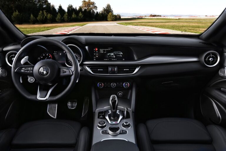 Ta sama sportowa inspiracja pojawia się również w czystym, przejrzystym wnętrzu SUV-a Stelvio, które jest całkowicie skoncentrowane na kierowcy, co widać po zgrupowaniu wszystkich elementów sterujących na małej, bezpośredniej kierownicy, zaprojektowanej, aby odpowiadać wszystkim stylom jazdy. Ale to nie wszystko. Pozycja kierowcy została zaprojektowana wokół kierowcy, z ukośnym tunel i lekko falującą deską rozdzielczą; a wnętrze zostało „dostosowane” jak szyty na miarę garnitur, z dbałością o szczegóły i wysokiej jakości materiałami: włókno węglowe, drewno i tkaniny zostały wybrane ze względu na ich wizualny i dotykowy urok oraz zmontowane, aby nadać wyraźne poczucie ludzkiego rzemiosła.