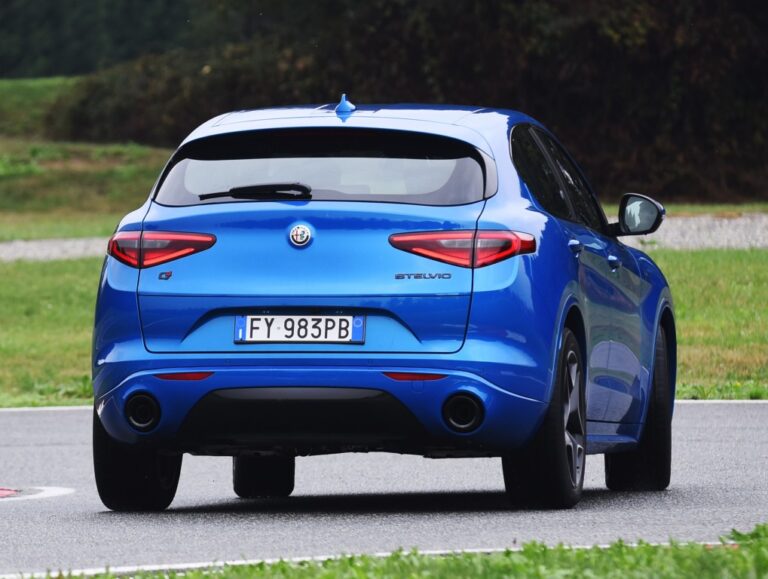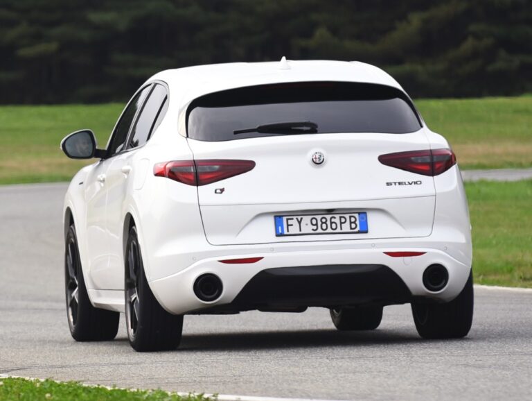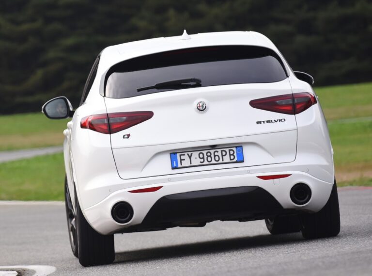 Tył Stelvio również natychmiastowo przyciąga wzrok dzięki sportowemu wyglądowi uzyskanemu z dolnej części, charakteryzującej się czterema końcówkami wydechowymi, oraz stylizacji „Kamm tail”, która nadaje samochodowi unikalny, rozpoznawalny charakter, a także oddaje hołd historii Alfy Romeo – ponieważ ten wyróżniający się design pojawił się również w niektórych z jej najbardziej prestiżowych modeli sportowych i wyścigowych.