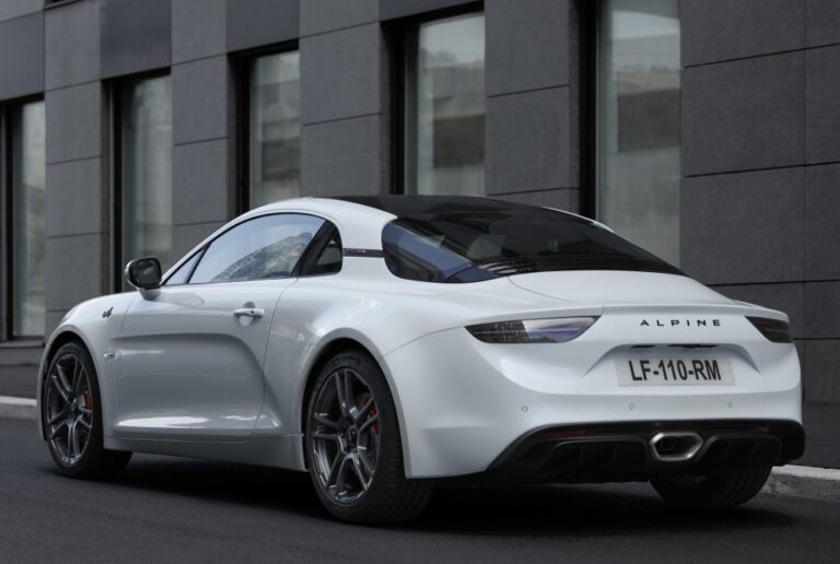 Dzięki temu Alpine A110 osiąga elektronicznie ograniczoną maksymalną prędkość 155 mph, zachowując płynny profil 'Alpine’ – bez potrzeby stosowania tylnego spoilera.