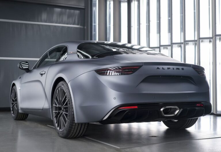 Z tyłu, światła LED w kształcie 'X’ z dynamicznymi kierunkowskazami nadają samochodowi wysoce nowoczesny wygląd, podczas gdy opadająca, owinięta tylna szyba przypomina nam o przeszłych modelach Alpine.
