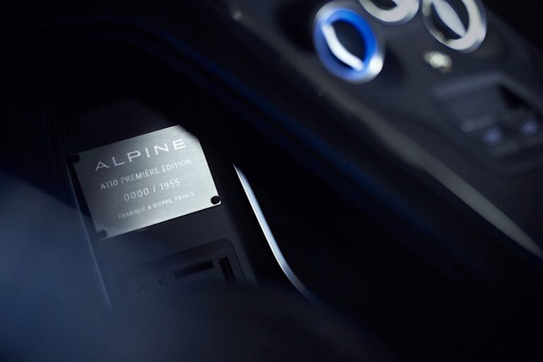 Alpine A110 Première Edition to limitowana seria 1,955 egzemplarzy. Liczba 1,955 odnosi się do roku, w którym Jean Rédélé założył markę Alpine.