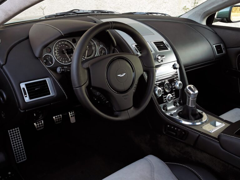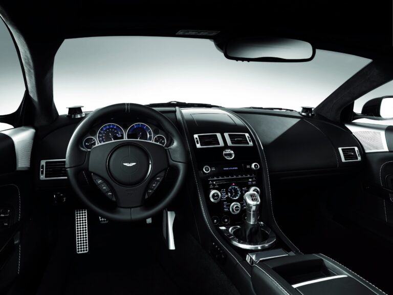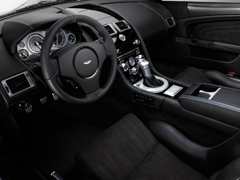 DBS ma unikalne sterowania główne, w tym nowy profil kierownicy z podwójnym szwem, który wskazuje pozycję „na środku”. Gałka zmiany biegów została wykonana z polerowanego stopu, aby nawiązać do metalicznych wykończeń nowego panelu sterowania. Zespół wskaźników zaprojektowano z białymi cyframi na ciemnym tle grafitowym, co zapewnia doskonałą czytelność. Wzór z podwójnym szwem przechodzi przez wnętrze jako znak rozpoznawczy; wyrównanie obu linii szwów jest świadectwem trwającej tradycji Aston Martin dotyczącej wyjątkowego rzemiosła.
