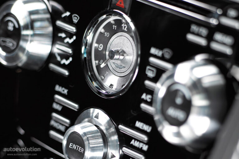 Sekwencja uruchamiania Aston Martin DBS została wzbogacona o nowy projekt centralnego panelu sterującego, z odlewanym metalowym wykończeniem, wyraźną typografią i nowymi grafikami. Nowy panel ma tradycyjny zegar z tarczą na środku, flanking dwa pokrętła do systemu ogrzewania i klimatyzacji, wykonane z solidnego, obrabianego aluminium.