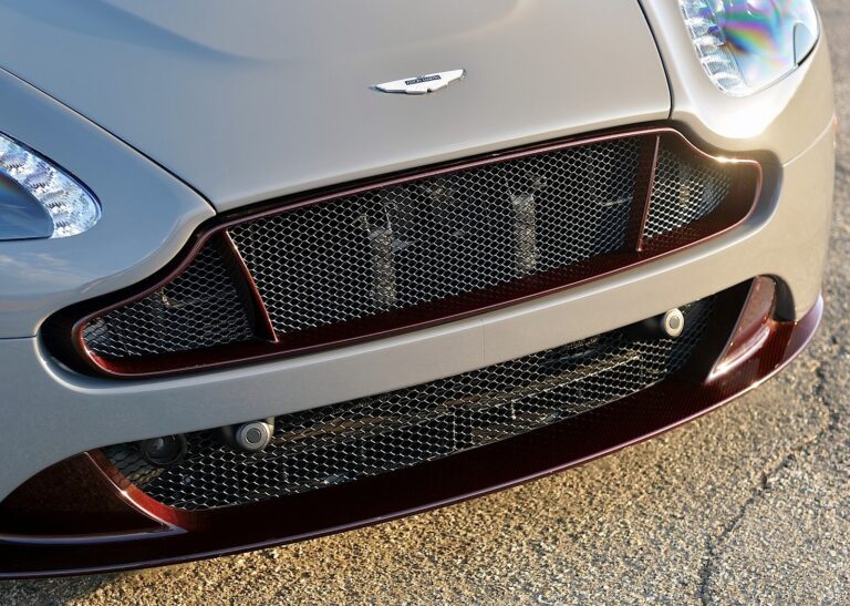 maską. Duża, typowa dla Aston Martin atrapa chłodnicy wyglądała bardziej jak otwarta paszcza z czarną siatką. Elementy z włókna węglowego na karoserii sprawiały, że auto wyglądało bardziej agresywnie, mimo że sama marka była elegancka, ale jednocześnie sportowa.