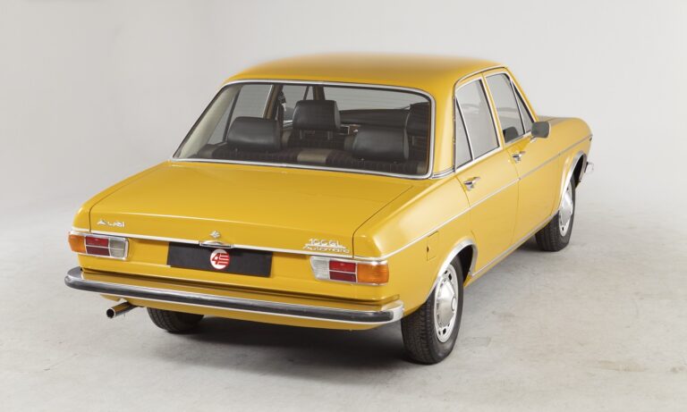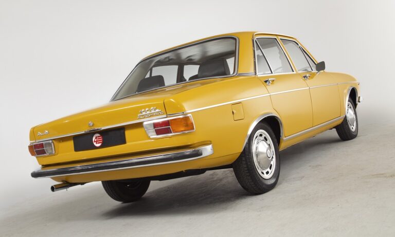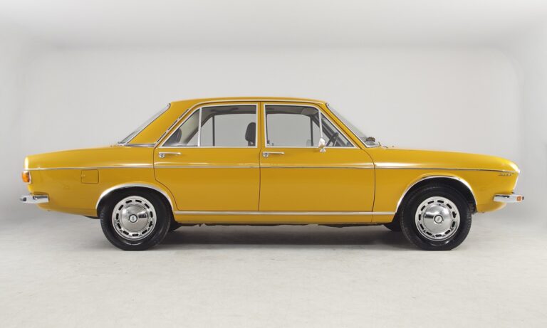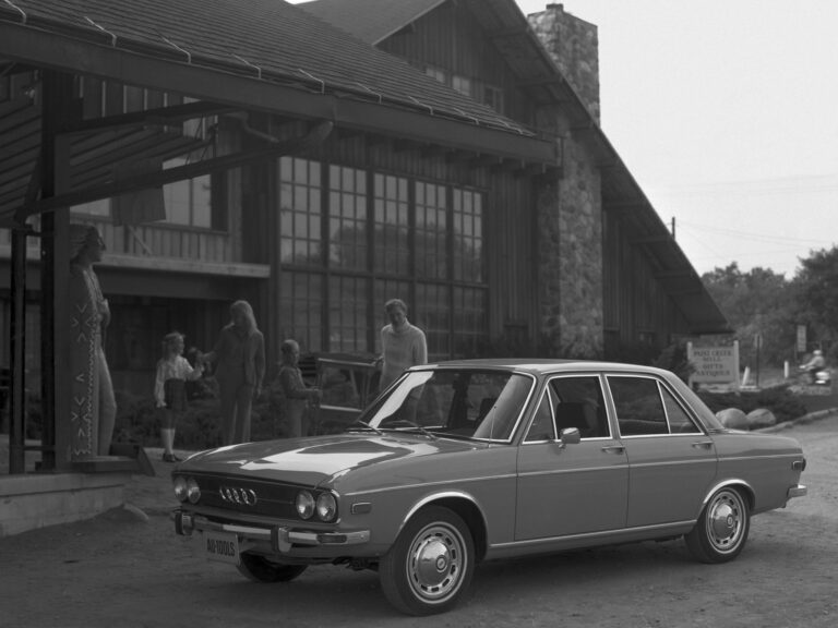 Audi 100 zostało opracowane na platformie Volkswagen C1. Za tym samochodem kryje się dziwna historia, złożona fabuła zorganizowana przez zarząd Audi, aby przekonać radę nadzorczą Volkswagena do umożliwienia im budowy sedana klasy executive. Cztery okrągłe reflektory, lekko zakrzywione linie nadwozia oraz przestronna kabina zjechały z taśmy produkcyjnej w 1968 roku. To był ogromny sukces, a do 1976 roku sprzedano prawie 900 000 egzemplarzy, zanim został zastąpiony. Nazwa 100 pochodzi od mocy silnika w wersji topowej.
