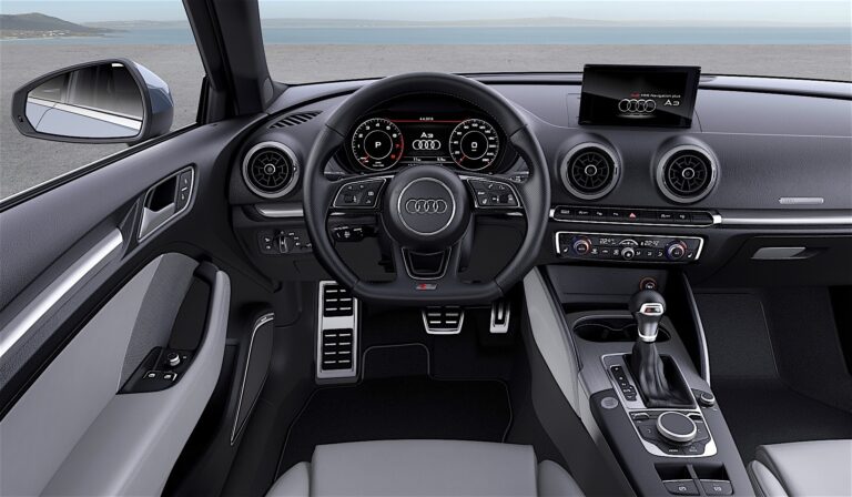 Najważniejszym elementem wnętrza nowego Audi A3 jest wirtualny kokpit Audi. Ten innowacyjny koncept obsługi jest dostępny po raz pierwszy w segmencie kompaktów. Wirtualny kokpit Audi wyświetla najważniejsze informacje związane z jazdą w wysokiej rozdzielczości na 12,3-calowym ekranie TFT. Kierowca może przełączać się między dwoma widokami, naciskając przycisk „Widok” na wielofunkcyjnym kole kierownicy. W trybie klasycznym wskaźniki wyglądają jak standardowe analogowe wyświetlacze.