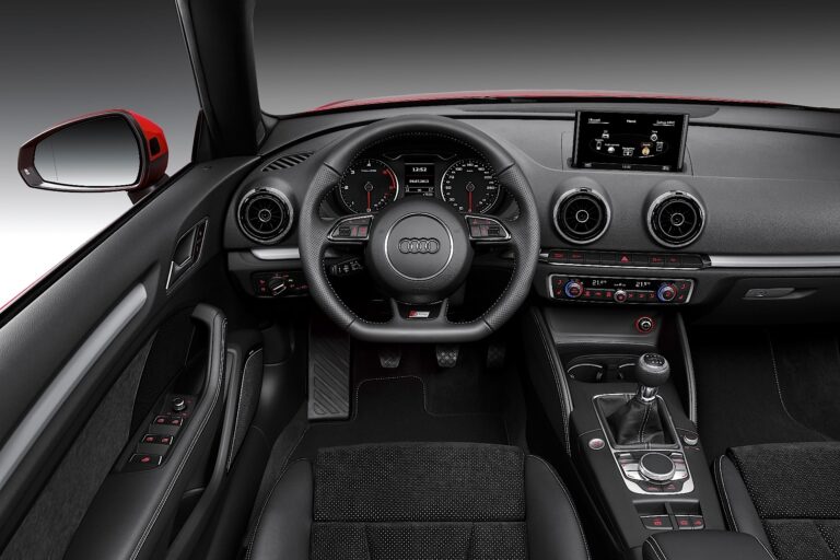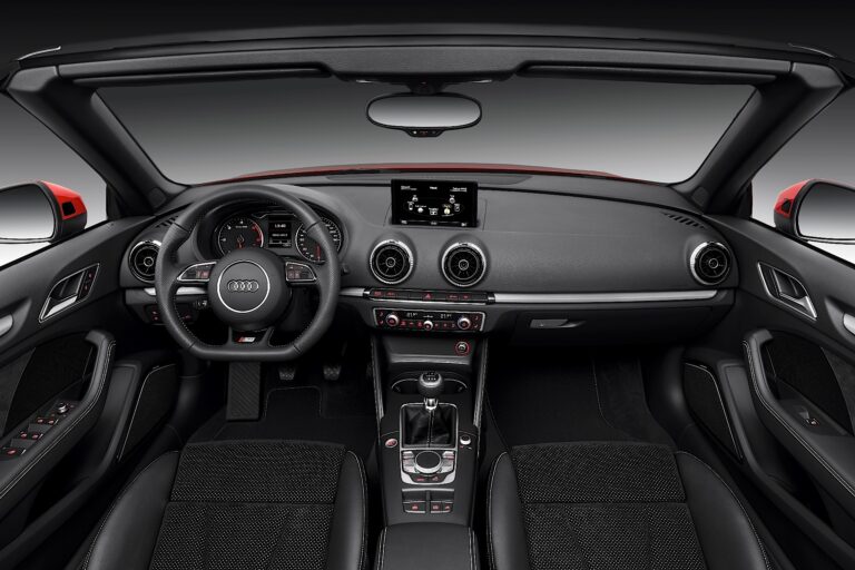 Pakiet sportowy S line jest dostępny dla Audi A3 Cabriolet Ambition; całkowicie zanurza wnętrze w czerni. Materiały tapicerskie wahają się od sportowej tkaniny do eleganckiej skóry Fine Nappa. Oparcia sportowych siedzeń (opcjonalne siedzenia sportowe S) są wytłoczone logo S line. Srebrne szwy dodają akcentów, nawet w dywanikach. Wykończenia wkładek zaprojektowane są w formie matowego szczotkowanego aluminium lub 3D-design „Black”. Specjalna sportowa kierownica skórzana – opcjonalnie ze spłaszczonym dołem – oraz uchwyt zmiany biegów z perforowaną skórą uzupełniają sportowy wygląd.