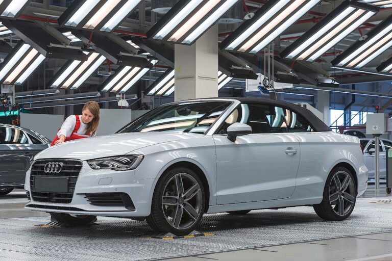 Podczas produkcji nadwozia nowego A3 Cabriolet Audi stosuje różnorodne technologie łączenia w swoim zakładzie w GyQr na Węgrzech. Rezultaty tych skomplikowanych metod to doskonała sztywność skręcająca, wysoka precyzja wytwarzania, dobra wygoda wibracyjna i wysoki poziom bezpieczeństwa w razie wypadku. W przypadku kolizji czołowej, przedni stelaż rozkłada siły na człony boczne. Mocne progi i słupki B chronią pasażerów w przypadku uderzenia bocznego. W przypadku kolizji tylnej, belki zderzaka przenoszą obciążenia na człony boczne.