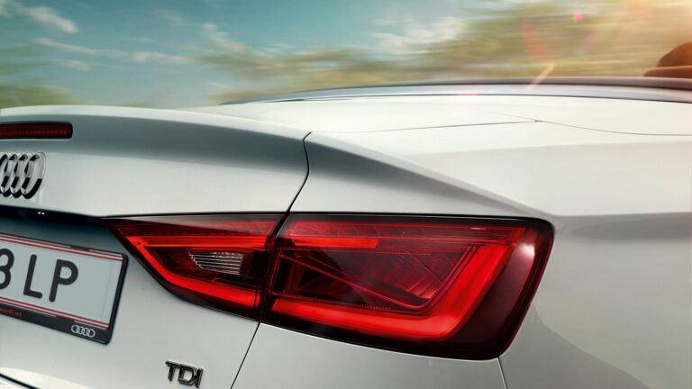 Wysokiej jakości alternatywą w nowym Audi A3 Cabriolet są reflektory LED – technologia, która pochodzi bezpośrednio z klasy pełnowymiarowej. Ich światło, o temperaturze barwowej około 5 500 Kelvinów, przypomina światło dzienne, co jest mniej męczące dla oczu. Diody LED zostały zaprojektowane na cały okres eksploatacji pojazdu i są bardzo wydajne. Reflektory LED oferują także specjalne funkcje dla skrzyżowań, dróg wiejskich, autostrad, jazdy po lewej stronie oraz złej pogody, z niektórymi funkcjami z interakcją z MMI navigation plus.