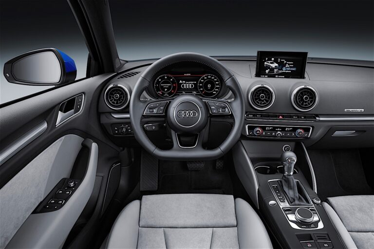Wnętrze oferuje typową dla Audi najwyższą jakość. Nowo zaprojektowana trójramienna kierownica jest grzana na życzenie. Dla większego komfortu podczas długich podróży Audi oferuje siedzenie kierowcy z funkcją masażu w nowym A3.