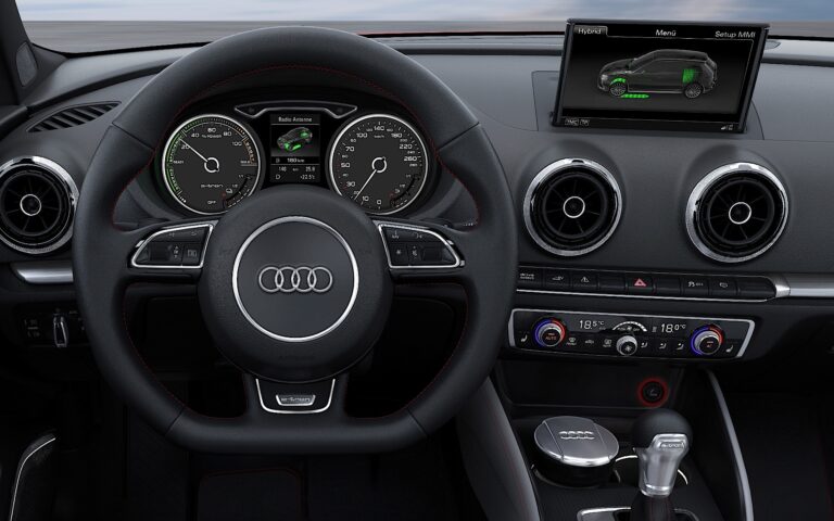 Audi A3 Sportback e-tron prezentuje precyzyjne informacje o stanie napędu. Miernik mocy w zestawie wskaźników pokazuje łączną moc systemu, a także status napędu i poziom naładowania baterii. Monitor MMI navigation plus wyświetla przepływy energii w systemie hybrydowym. Dodatkowo w systemie informacji dla kierowcy wyświetlane są zasięgi operacyjne oraz dane zużycia energii elektrycznej i benzyny.