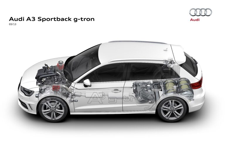 Audi A3 Sportback g-tron, pierwszy samochód marki na gaz ziemny, ukazuje głębię technologicznego zaawansowania Audi – od technologii ultra lekkiej po zaawansowane systemy informacyjne i asystencję kierowcy. Prezentuje nowoczesną technologię CNG (CNG = sprężony gaz ziemny), w komplecie z technologią magazynowania paliwa. Dwa sprężone zbiorniki umieszczone pod podłogą bagażnika pomieszczą po około siedem kilogramów (15.43 lb) gazu; wykorzystują one w zasadzie wnękę na koło zapasowe, co minimalnie wpływa na pojemność ładunkową.