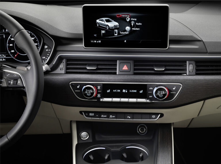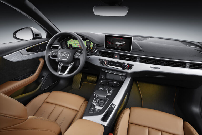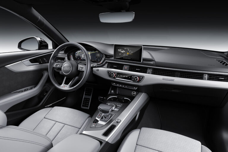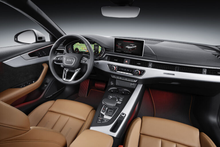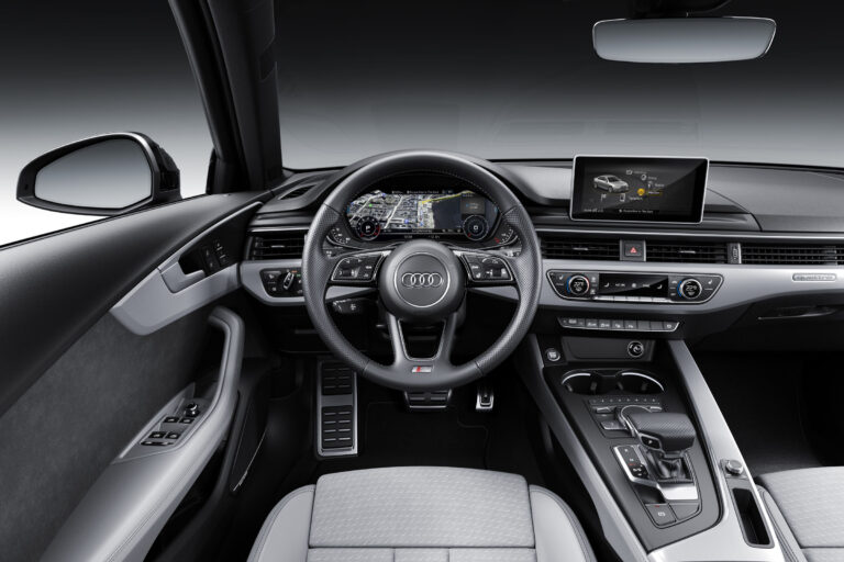 Wnętrze A4 miało sportowy charakter, z trójramienną, wielofunkcyjną kierownicą oraz sportowymi skórzanymi fotelami w pakiecie S line.
