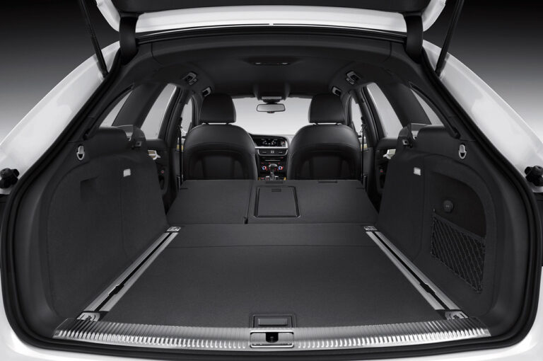 Bagażnik Audi A4 Sedan wciąż ma pojemność 480 litrów – 962 litry przy złożonych tylnych siedzeniach (16,95 i 33,97 stopy sześcienne). A4 Avant i A4 allroad quattro mają odpowiednio 490 i 1.430 litrów (17,30 i 50,50 stopy sześcienne), a Audi oferuje opcjonalną elektryczną klapę bagażnika dla obu modeli.