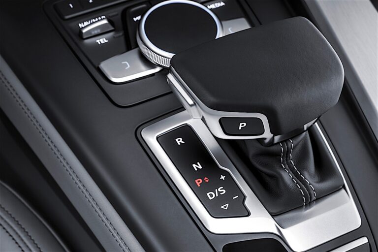 Szeroka, asymetrycznie podzielona konsola centralna mieści element sterujący MMI. Jego design i położenie różnią się w zależności od przekładni samochodu. Jeśli samochód jest wyposażony w S tronic lub tiptronic, terminal umieszczony jest blisko deski rozdzielczej; niski dźwignia automatyczna oferuje nadgarstkowi wygodne miejsce do odpoczynku. W przypadku manualnej skrzyni biegów, dźwignia wyboru jest przed terminalem MMI.