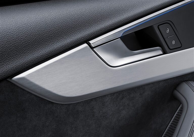 Jak zawsze w Audi, wszystkie materiały we wnętrzu nowego A4 i A4 Avant zostały starannie wybrane i obrobione. Precyzyjnie dopasowane chromowane paski otaczają górną krawędź wlotów powietrza, elementy sterujące automatyczną klimatyzacją oraz dźwignię automatycznej skrzyni biegów na konsoli centralnej. Wcięcia na uchwyty drzwi są bezpośrednio wkomponowane w wykończenie drzwi – to nowoczesny i niezwykle atrakcyjny szczegół. Wszystkie szwy są niezwykle wąskie i równoległe.