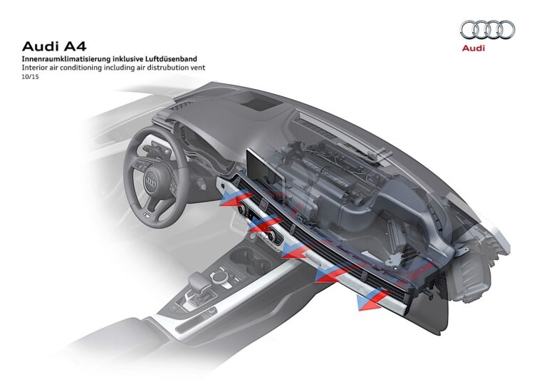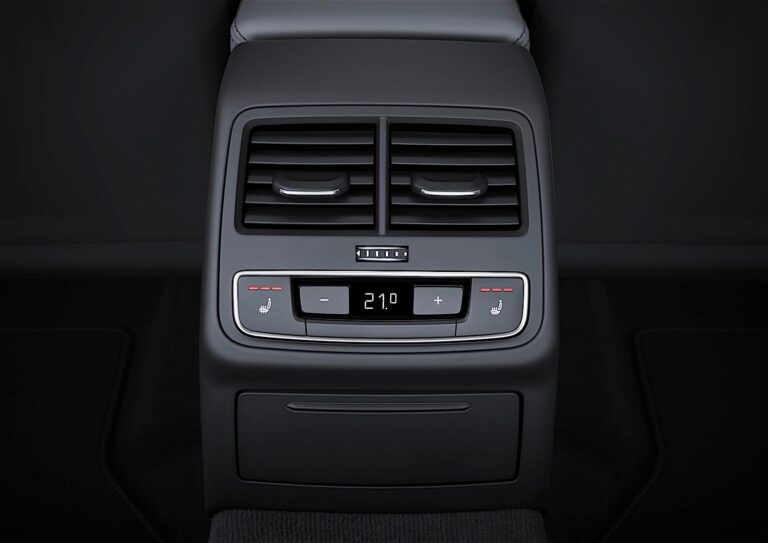 W przypadku luksusowej automatycznej klimatyzacji, szeroki pas wlotów powietrza pozwala na wentylację pośrednią, zwiększając objętość powietrza cyrkulującego. Wnętrze może być klimatyzowane w trzech oddzielnych strefach; pasażerowie z tyłu mają swoje własne urządzenie sterujące z wyświetlaczem cyfrowym. Audi oferuje również opcję systemu ogrzewania pomocniczego, który szybko ogrzewa wnętrze. W połączeniu z opcjonalnym systemem operacyjnym Audi connect, ogrzewanie pomocnicze można wygodnie zaprogramować za pomocą aplikacji na smartfony.