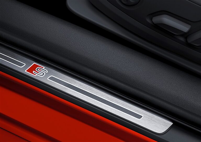 W ramach pakietu sportowego S line wnętrze jest w kolorze czarnym lub szarym rotorowym. Sportowe fotele są wykończone kombinacją skóry nappa perłowej i tkaniny sekwencyjnej; alternatywy to skóra nappa perłowa z wytłoczoną alcantarą lub skóra fine nappa. Oparcia foteli przednich zawsze posiadają logo S w połączeniu z pakietem sportowym S line. Wstawki złożone są z szczotkowanego aluminium lub czarnego fortepianu. Sportowa kierownica, podświetlane progi drzwi oraz błotniki z emblematami S dopełniają sportowy wygląd. Sportowy design kończy się stalowymi pedałami i podnóżkami, a także dywanikami z kontrastowymi szwami.