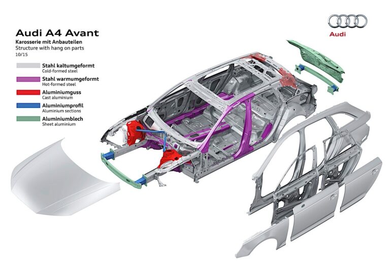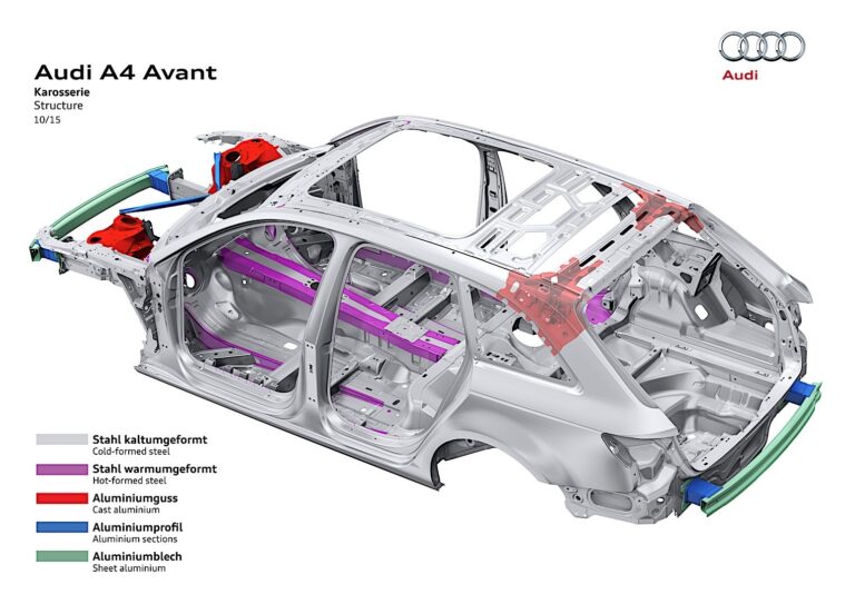 Odmiana kombi A4 B9 oparta była na platformie MLB Grupy Volkswagen, która była również wykorzystywana w SUV-ach Audi Q5 i Q7. Projekt pojazdu był identyczny z wersją czterodrzwiową aż do słupka B. Od tego momentu różnił się on od sedana. Dłuższy dach zaczynał opadać po tylnych siedzeniach i kończył się małym spojlerem dachowym, co poprawiało przepływ powietrza.