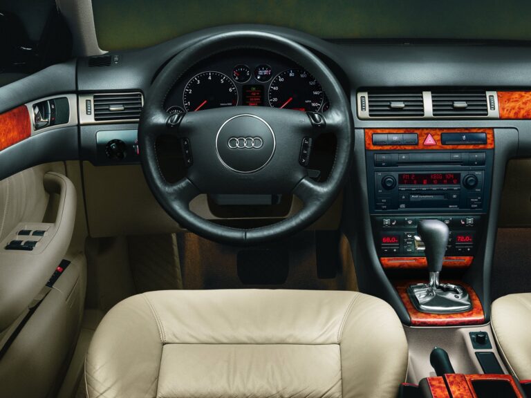 Wnętrze modelu A6 z 2002 roku również zostało zmodernizowane. Pojawiło się poczucie amerykańskiego luksusu dzięki wprowadzeniu schowków w drzwiach, jednak wciąż brakowało prawdziwych uchwytów na kubki w konsoli centralnej. Projektanci wnętrz pracowali nad poprawą wyglądu, dodając drewniane wykończenia na desce rozdzielczej i panelach drzwiowych.