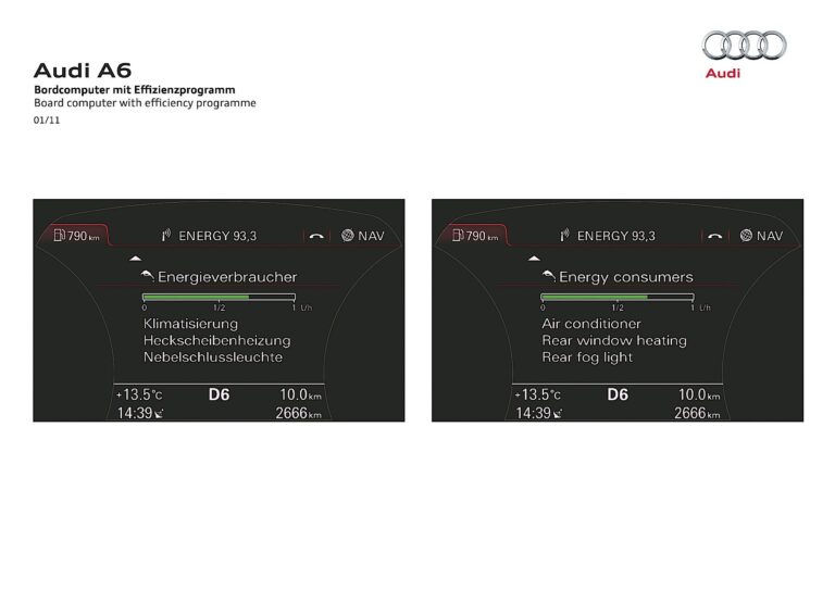 Opcjonalny system informacji dla kierowcy (DIS) o przekątnej siedmiu cali znajduje się między dwoma dużymi wskaźnikami zegarowymi. Sterowany jest za pomocą wielofunkcyjnego koła kierownicy, które, podobnie jak DIS, jest dostępne w wielu wersjach. Wśród standardowych funkcji systemu znajduje się komputer pokładowy z programem efektywności. Komputer pokładowy zapewnia wskaźnik zmiany biegów, oferuje wskazówki dotyczące oszczędnej jazdy i wyświetla aktualne zapotrzebowanie na energię przez pokładowe odbiorniki.