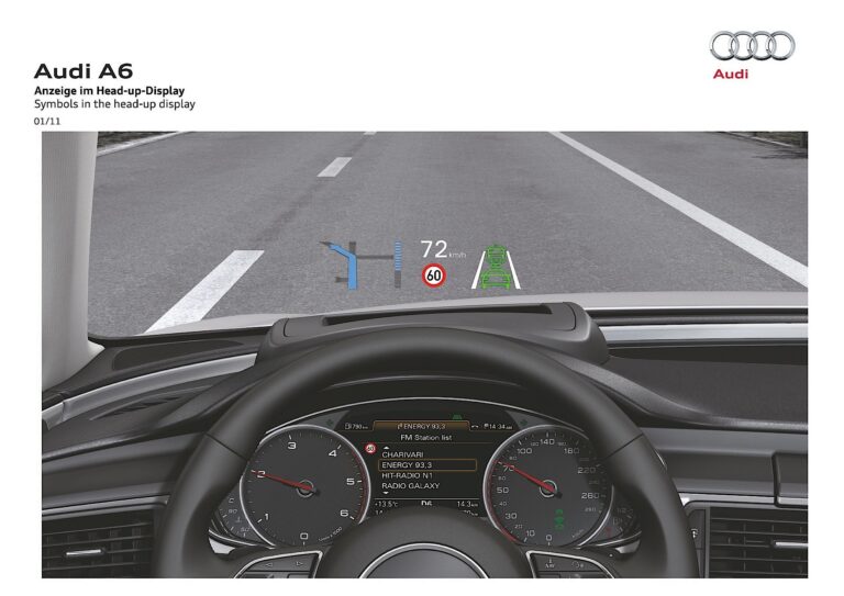 W nowym Audi A6 standardowo znajduje się wysoko efektywny dwustrefowy automatyczny system klimatyzacji. Jedną z najciekawszych opcji jest nowo opracowany wyświetlacz head-up, który rzutuje ważne informacje na przednią szybę. Kolorowe cyfry i symbole wydają się unosić w odległości około 2,5 m (8,20 ft), co zapewnia optymalną czytelność. Kierowcy mogą dostosować wyświetlacz do określonych informacji.