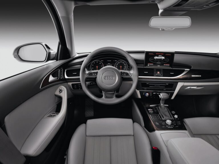 Przestronne wnętrze nowego Audi A6 nawiązuje do smukłego stylu nadwozia. Dominuje element „wrap-around” – wkładka otaczająca kierowcę oraz pasażera z przodu. Elegancko wyprofilowana deska rozdzielcza umieszcza kierowcę w centrum wnętrza.