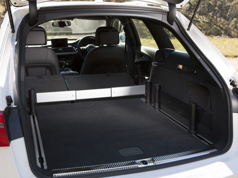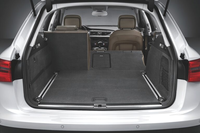 Przestrzeń bagażowa nowego Audi A6 allroad quattro ma pojemność 565 litrów. Zatrzaski w bagażniku umożliwiają łatwe złożenie tylnych siedzeń, co zwiększa pojemność bagażową do 1680 litrów. Standardowe wyposażenie podkreśla praktyczny charakter nowego modelu – system szynowy z dołączonym zestawem do zabezpieczenia ładunku do podziału bagażu, pasy napinające na lewej ścianie i podwójna podłoga ładunkowa.