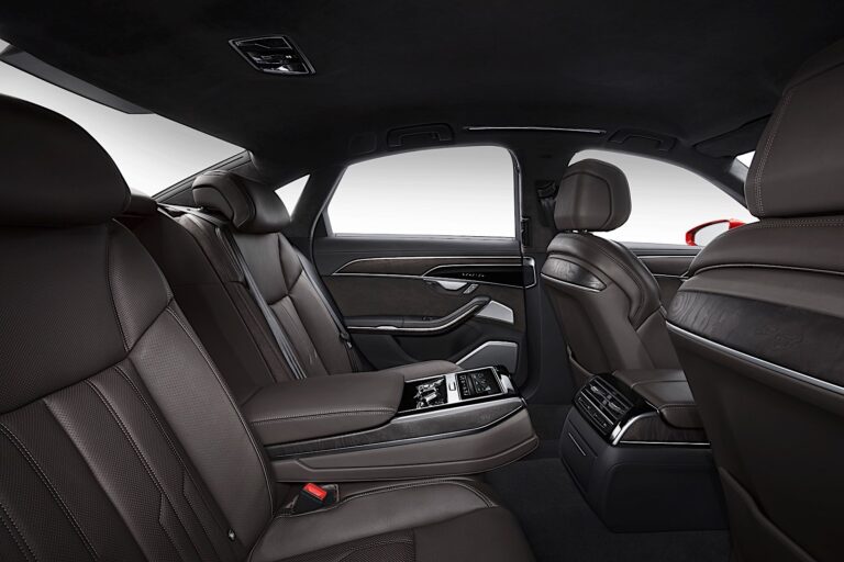 Wnętrze nowego A8 wyróżnia się autentycznymi materiałami. Niektóre z prawdziwych wstawek drewnianych są otwarte i czują się naturalnie w dotyku. Dla swoich skór, Audi zasadniczo unika garbowania chromem – ich najwyższej jakości unikalne egzemplarze są naturalnymi materiałami garbowanymi produktami roślinnymi, mogą aktywnie oddychać i są ręcznie wykonane. Komfortowe zagłówki są pokryte miękką, aksamitną skórą Cocoon, nowym materiałem najwyższej jakości. Harmonia materiałów i ich naturalność tworzą nowoczesne wrażenie luksusu. Promieniują rzemiosłem w najdrobniejszych detalach, nadając im charakter szyty na miarę; to samo dotyczy perforacji w tapicerce siedzeń.