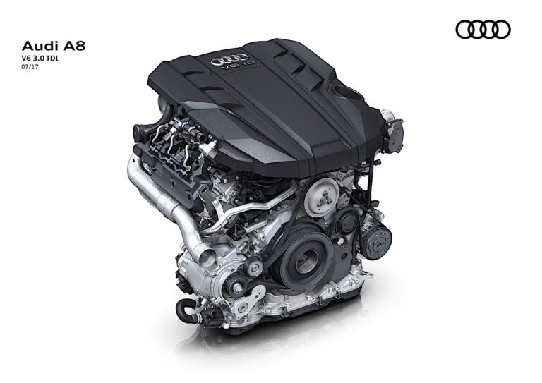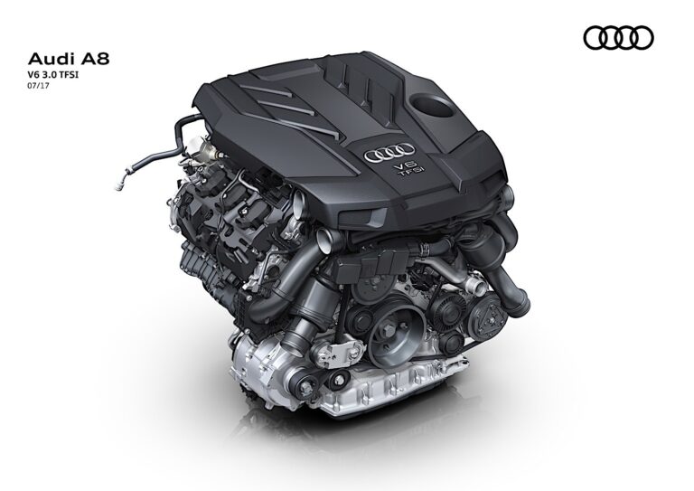 Obie jednostki V6 to jednostki high-tech. 3.0 TDI rozwija 210 kW (286 hp) z pojemności 2 995 cm³. Wiele obszarów zostało gruntownie przerobionych, takich jak bardzo skomplikowane zarządzanie termiczne. Z momentem obrotowym 600 Nm (442,5 lb-ft) w zakresie obrotów od 1 250 do 3 250 rpm, rozwija ogromną siłę ciągu. 3.0 TFSI o pojemności 2 967 cm³ rozwija 250 kW (340 hp) i również osiąga swój szczyt momentu obrotowego 500 Nm (368,8 lb-ft) niezwykle nisko w zakresie obrotów, między 1 370 a 4 500 rpm. Jego końcówka wydechowa znajduje się wewnątrz kąta 90°, więc krótkie ścieżki gazowe i podwójny doładowacz promują responsywność. Jego zasada spalania sprawia, że silnik V6 napędzany benzyną jest szczególnie efektywny. Aby go wspierać, system Audi valvelift (AVS) dostosowuje czasy otwarcia zaworów dolotowych i skok w dwóch etapach, w zależności od zapotrzebowania.
