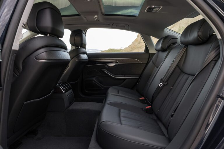 Oferta siedzeń i ich wyposażenia w ulepszonej A8 jest zróżnicowana, bardzo komfortowa i emanuje najwyższym autorytetem – szczególnie dla tylnych siedzeń, gdzie dostępnych jest wiele opcji. Siedzenie relaksacyjne w A8 L to szczyt programu. Oferuje liczne opcje regulacji oraz podnóżek na plecach fotela pasażera. Pasażerowie mogą korzystać z niego, aby podgrzać i masować podeszwy stóp w różnym stopniu. Pakiet relaksacyjny obejmuje masaż pleców z 18 poduszkami pneumatycznymi, elektrycznie regulowane zagłówki komfortowe, opcjonalną ciągłą konsolę środkową – również dostępną z opcjonalnymi składanymi stolikami – czterostrefową automatyczną klimatyzację deluxe oraz nowe ekrany z tyłu. Lodówka z miejscem na napoje w programie Audi exclusive podkreśla komfort otoczenia.