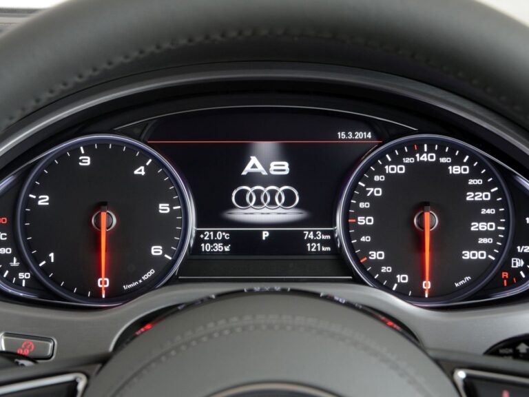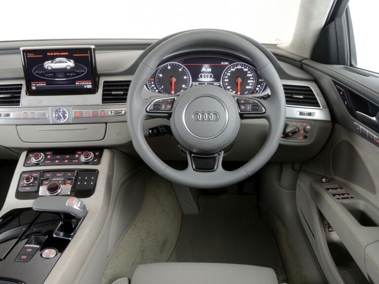 Jasna i intuicyjna filozofia obsługi Audi osiąga nowe szczyty w Audi A8. Duże, okrągłe wskaźniki są wyraźnie oddzielone. System informacji dla kierowcy (DIS), który służy jako w pełni funkcjonalne centrum informacji i sterowania, ma nowy układ. Jego ekran centralny zwiększył się do 7 cali przekątnej, pokazując wszystkie funkcje według łatwego do zrozumienia konceptu. Obsługuje się go za pomocą równie udoskonalonego wielofunkcyjnego sterowania.