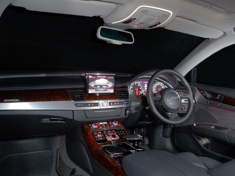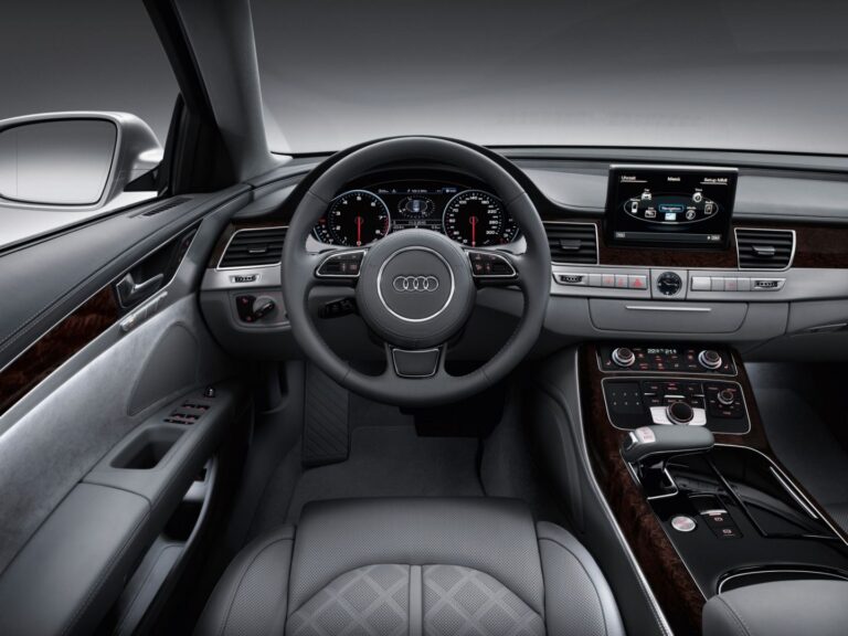 Audi A8 również stawia poprzeczkę na nowym poziomie w jakości wykonania, kolejnej wielkiej dziedzinie Audi. Połączenie najwyższej jakości materiałów i ich precyzyjnego wykonania sprawia, że wnętrze jest zmysłowym doświadczeniem. Duże elementy sterujące i przyciski są na życzenie dostępne z aluminiowymi powierzchniami i klikają łatwo i precyzyjnie jak w zegarku. Wiele przycisków błyszczy w czarnym połysku, a wszystkie często używane części pokryte są nowym rodzajem powłoki, co czyni je niezwykle odpornymi na zarysowania.
