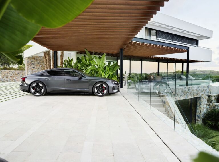 Po studium projektowym Audi prologue, które w 2014 roku zaprezentowało zapowiedź języka designu kolejnych modeli klasy pełnowymiarowej, e-tron GT stanowi następny etap ewolucji języka designu Audi. Jako gran turismo fascynuje rzeźbiarskim designem. To, co dotyczy obecnych modeli klasy pełnowymiarowej, odnosi się również do tego modelu: proporcje są fundamentem dobrego designu. Innymi słowy: długi rozstaw osi, szeroki tor, duże koła i płaska sylwetka. e-tron GT ma właśnie te idealne proporcje. Jego język designu stanowi punkt wyjścia dla projektowania przyszłych modeli elektrycznych Audi – będą one miały znacznie bardziej płynny design zewnętrzny niż dzisiejsze modele.