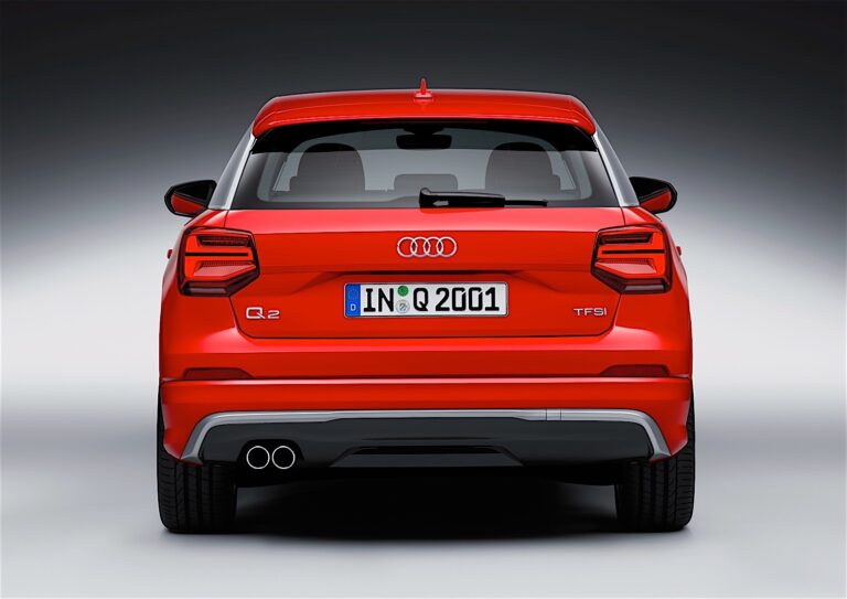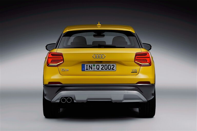 Audi Q2 na pierwszy rzut oka prezentuje mocny i energetyczny wizerunek. Dwa duże, silnie zarysowane wloty powietrza oraz wysoko umieszczony grill Singleframe wyraźnie nadają przodowi SUV-owy charakter. W profilu bocznym krawędzie i wielokąty podkreślają linie pojazdu w zupełnie nowym dla Audi języku designu. Ciekawym elementem jest kolorowy blade na niskim słupku C, który można spersonalizować. Powierzchnia szyb nad wysoką linią barków stanowi około jedną trzecią powierzchni metalowych elementów. Boki pojazdu są zwężone w rejonie drzwi, co podkreśla koła, a tym samym quattro charakter kompaktowego SUV-a. Z tyłu znajduje się długi spojler dachowy, mocno zarysowany zderzak oraz dyfuzor w stylu osłony podwozia, co nadaje dynamiczny wygląd. Ostatni element różni się w zależności od linii modelu. Po lewej stronie układ wydechowy kończy się jedną lub dwiema końcówkami. Podobnie jak w kształcie klinowym reflektory, tylne światła można także zrealizować w technologii LED w opcji. Audi oferuje również dynamiczne kierunkowskazy z tyłu.