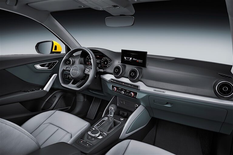 Obsługa Audi Q2 jest łatwa i ergonomiczna, tak jak w każdym Audi. Wyświetlacz MMI jest standardowo umieszczony wysoko na desce rozdzielczej. Jego rozmiar zależy od zamówionego systemu infotainment. Funkcje kontrolowane są przez pokrętło/przycisk oraz dwa przyciski na środkowym tunelu.