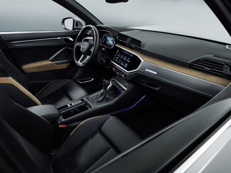 Od opcjonalnych pomarańczowych akcentów z Alcantary na bocznych panelach i desce rozdzielczej, przez drewniane wykończenia i aluminiowe klamki, aż po standardowe skórzane siedzenia – nowy Q3 oferował unikalny design oraz doskonały komfort, nawet w podstawowej wersji.