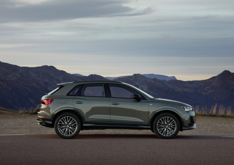 Z boku Q3 prezentuje się bardziej muskularnie, a linia barkowa łączy reflektory z tylnymi światłami.
